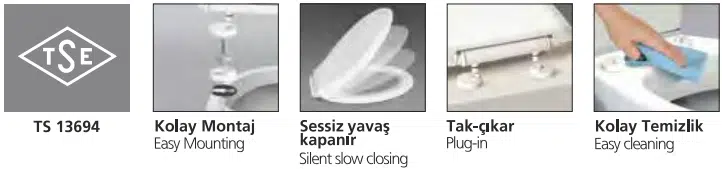 EtiketlerT-MAY Gökbel Kare Yavaş Kapanan Amortisörlü Klozet Kapağı Soft Close