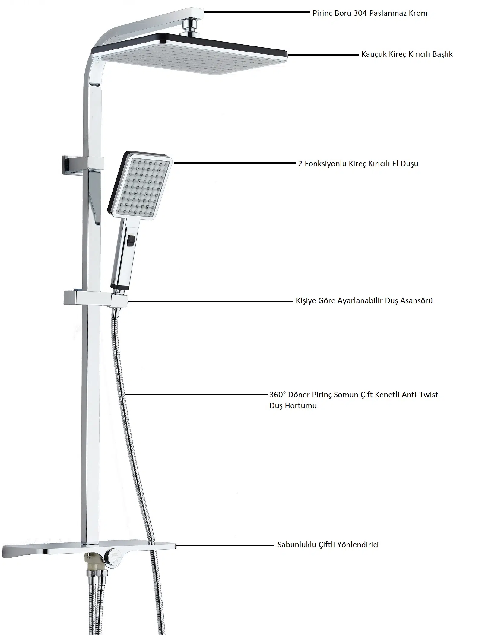 Krom Kaplı Sürgü SetiQ22 Krom Kaplı Paslanmaz ss 304 Kare Boru2 Duş FonksiyonuSabunluklu çiftli yönlendirici 150-170 Cm Uzayan Duş Spirali2 Yıl GarantiliKaplama