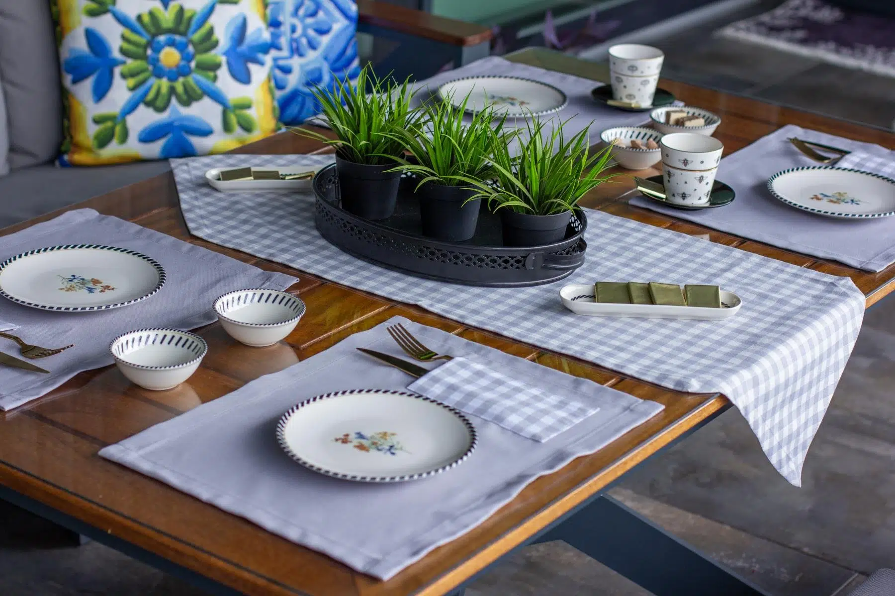 | Etiketler | Tropik home Amerikan Servis Moena Dinner Runner Seti 6 Kişilik Set Pudra Ekose Desen Salon ve Masa Sunum Takımı |