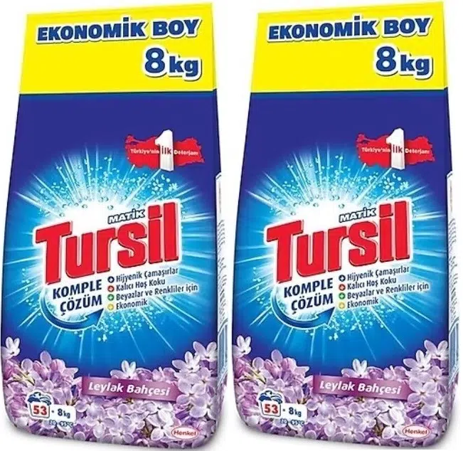 | Etiketler | Tursil Matik Toz Çamaşır Deterjanı 16KG Leylak Bahçesi (106 Yıkama) Renkli/Beyazlar (2PK*8KG) |