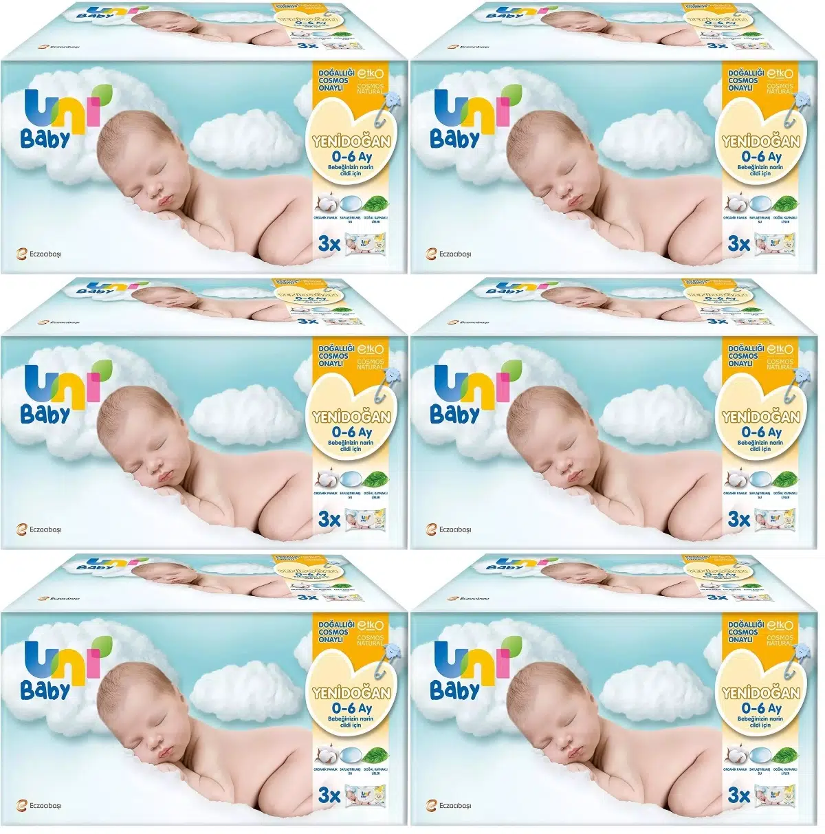 Uni Baby Yenidoğan, %100 doğal kaynaklı lifler ile dokunmuş yapısı, saflaştırılmış su ve organik pamuklu içeriği sayesinde bebeklerin cildine zarar vermez.