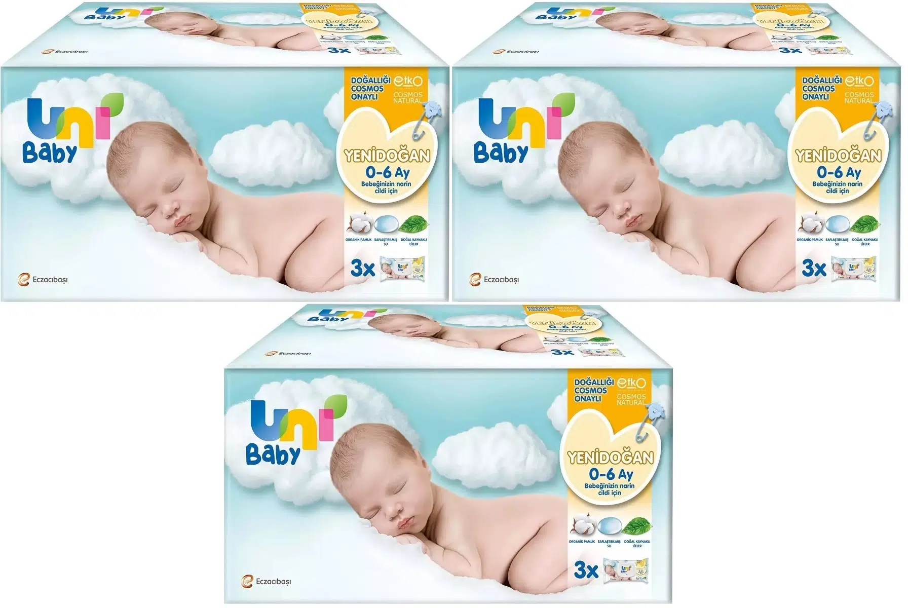 Uni Baby Yenidoğan, %100 doğal kaynaklı lifler ile dokunmuş yapısı, saflaştırılmış su ve organik pamuklu içeriği sayesinde bebeklerin cildine zarar vermez.