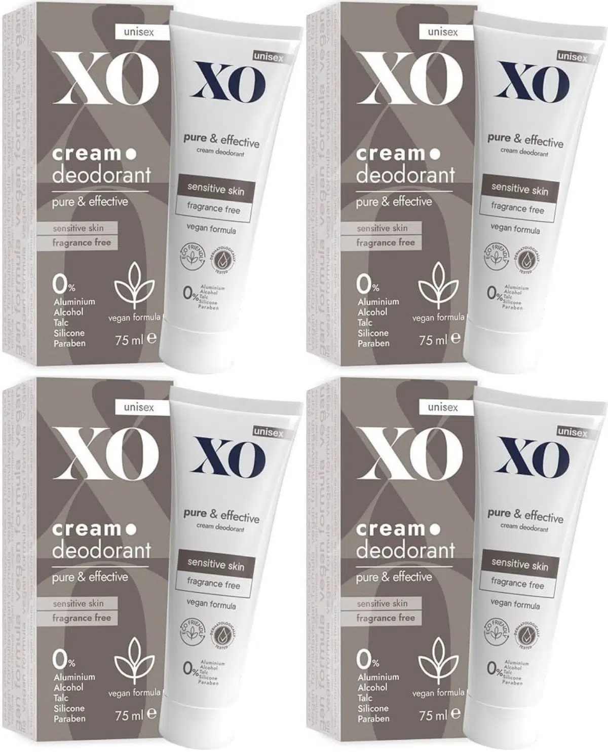 XO Krem Deodorant 75ML Unisex Pure & Effective Kokusuz (4 Lü Set)
